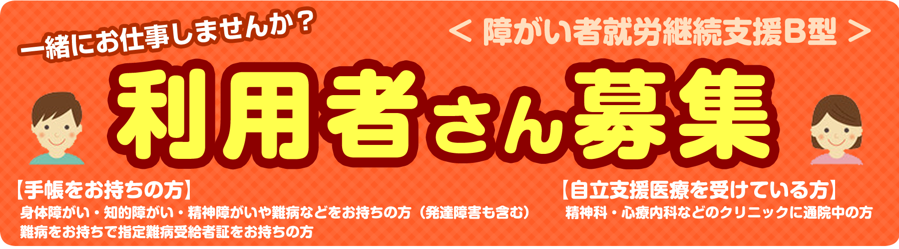 通所・在宅で作業する障がい者さんと一緒に業務に携わる為、指導の上でも幅広い分野で活躍出来るエネルギッシュなスタッフを募集しております。